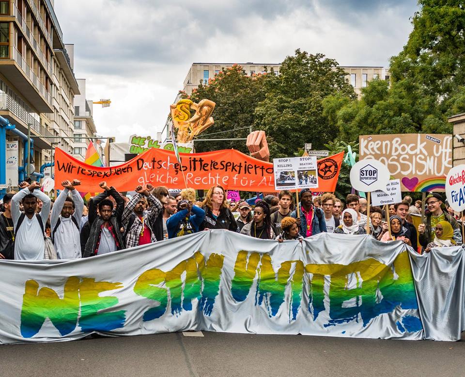 Demonstrieren ist der beste Weg, um unseren Stimmen und Vorderrungen Ausdruck zu geben. Wir demonstrieren für das Bleiberecht, gegen Rassismus und um das Töten zu stoppen. Was in unseren Heimatländern passiert ist schrecklich. Gesamte Länder und Städte werden zerstört. Berichte über Tode häufen sich. Die Toten werden nur noch als Zahlen angesehen. In unseren Ländern wird Gewalt von verschiedensten Seiten ausgeübt und hier müssen wir den alltäglichen Rassismus erfahren. Deswegen müssen wir demonstrieren und für unsere Rechte kämpfen.